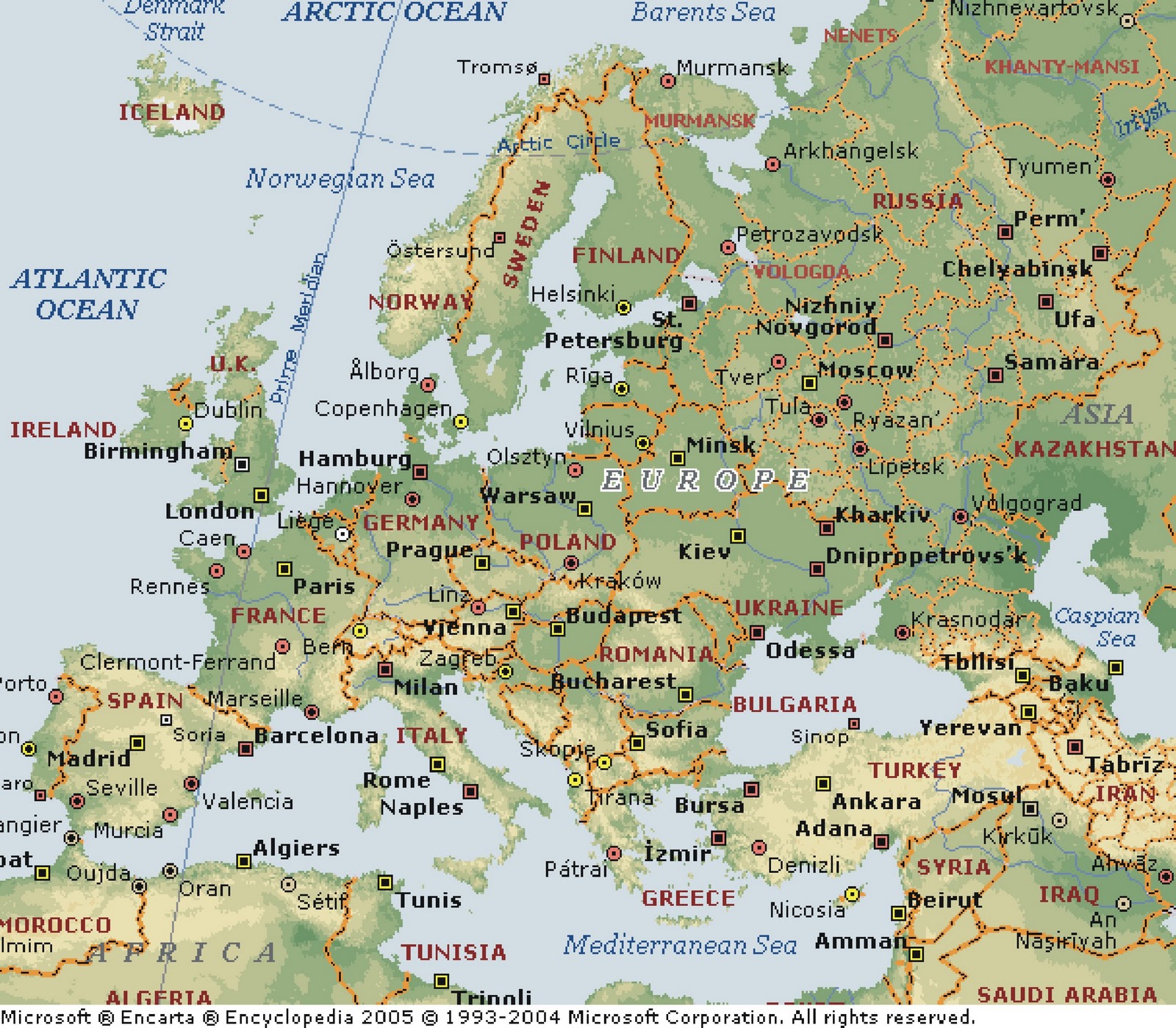 The second smallest continent (Australia is the smallest), Europe has an area of 10,355,000 sq km (3,998,000 sq mi), but it has the third largest population of all the continents, 729 million in 2004. The northernmost point of the European mainland is Cape Nordkinn, in Norway; the southernmost, Punta de Tarifa, in southern Spain near Gibraltar. From west to east the mainland ranges from Cabo da Roca, in Portugal, to the northeastern slopes of the Urals, in Russia.